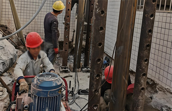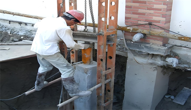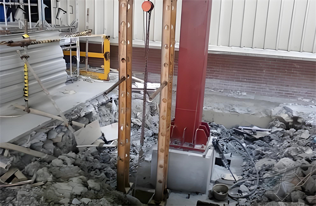 在施工過程中,首先需要進行現場勘測與設計,確定加固方案。隨后,在基礎上開鑿出壓樁孔和錨桿孔,利用錨桿反力,通過反力架和千斤頂將樁段從基礎壓樁孔內逐段壓入土中,直至達到設計深度。最后,將樁與基礎連接在一起,形成穩定的結構體系。